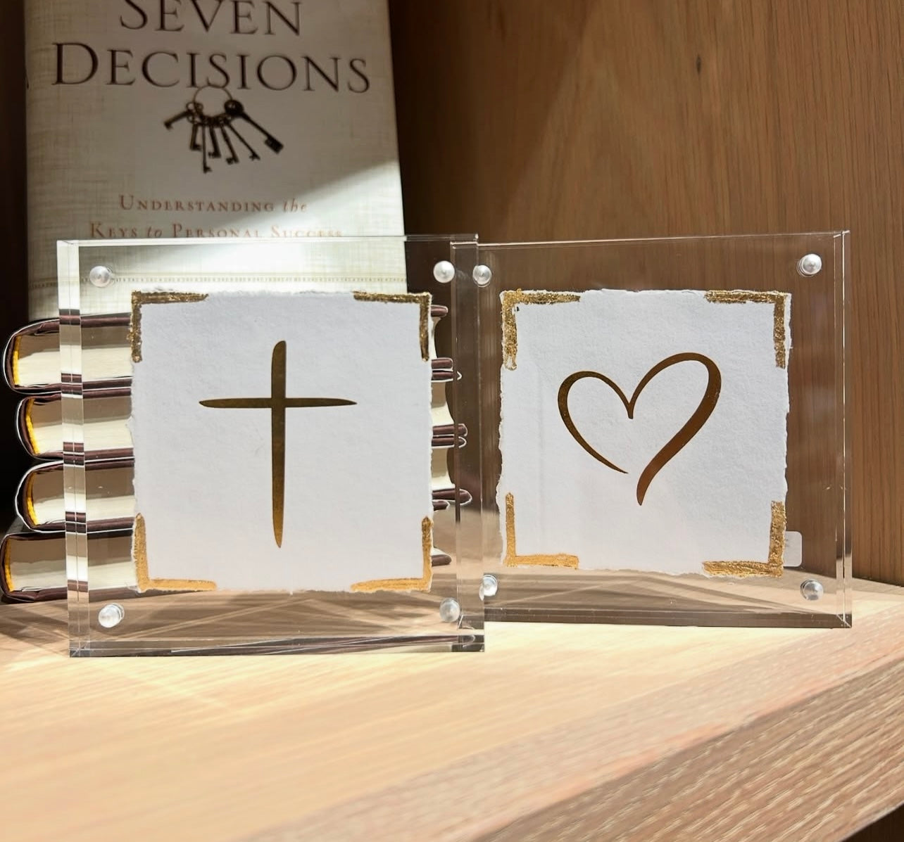 - 3×3 paper with gold embossed heart in 4×4 acrylic