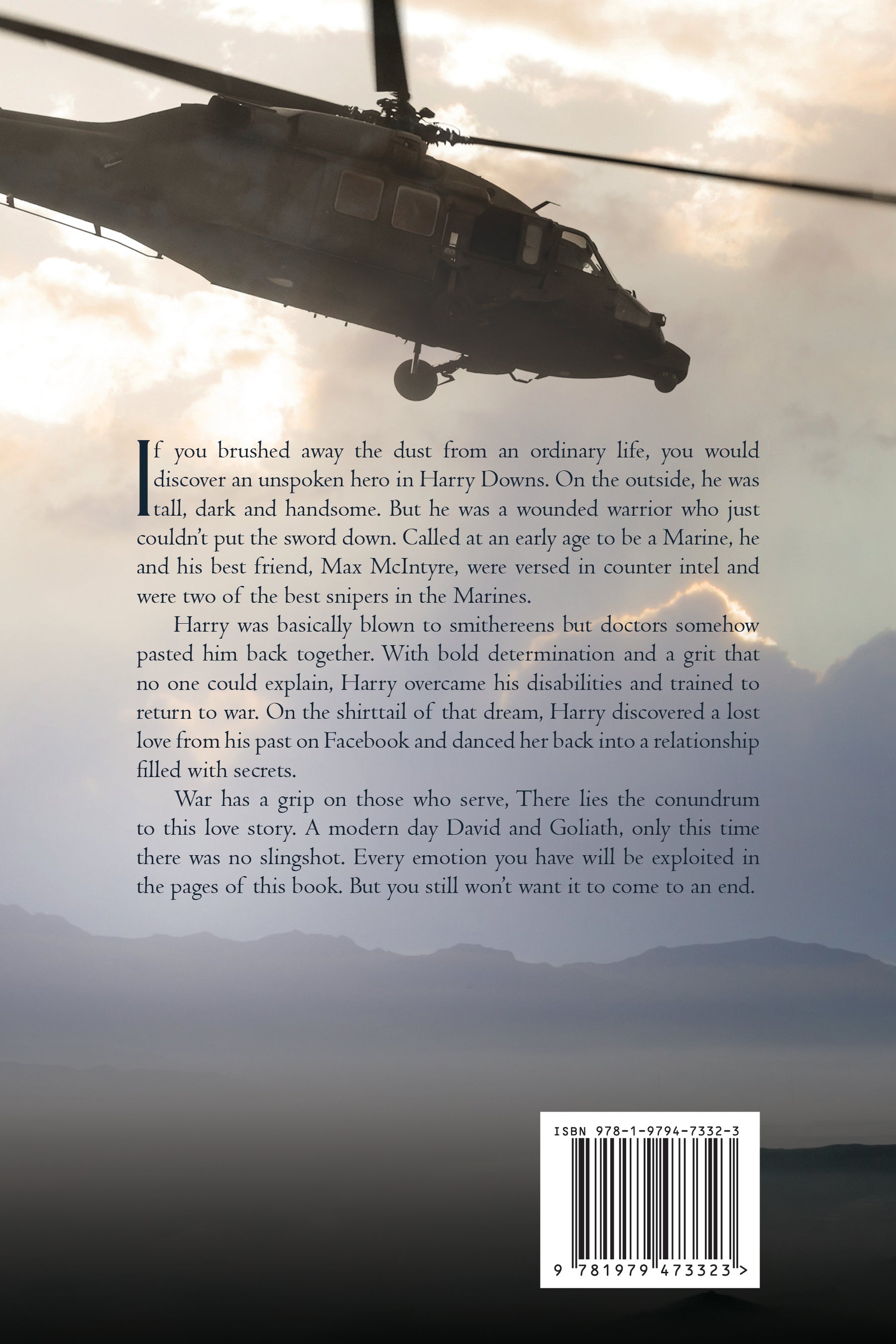 War has a grip on those who serve, There lies the conundrum to this love story. A modern day David and Goliath, only this time there was no slingshot. Every emotion you have will be explored in the pages of this book. But you still won't want it to come to an end.