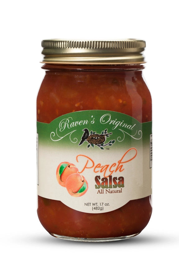 Our Peach Salsa is a spirited blend of ripe peaches, tomatoes, jalapeno peppers and spices. Made in small batches and simmered to perfection, our salsa is all natural, gluten and preservative free. Serve as a garnish on grilled fish, shrimp and chicken or added to grilled chicken fajitas for a sweet and savory flavor.